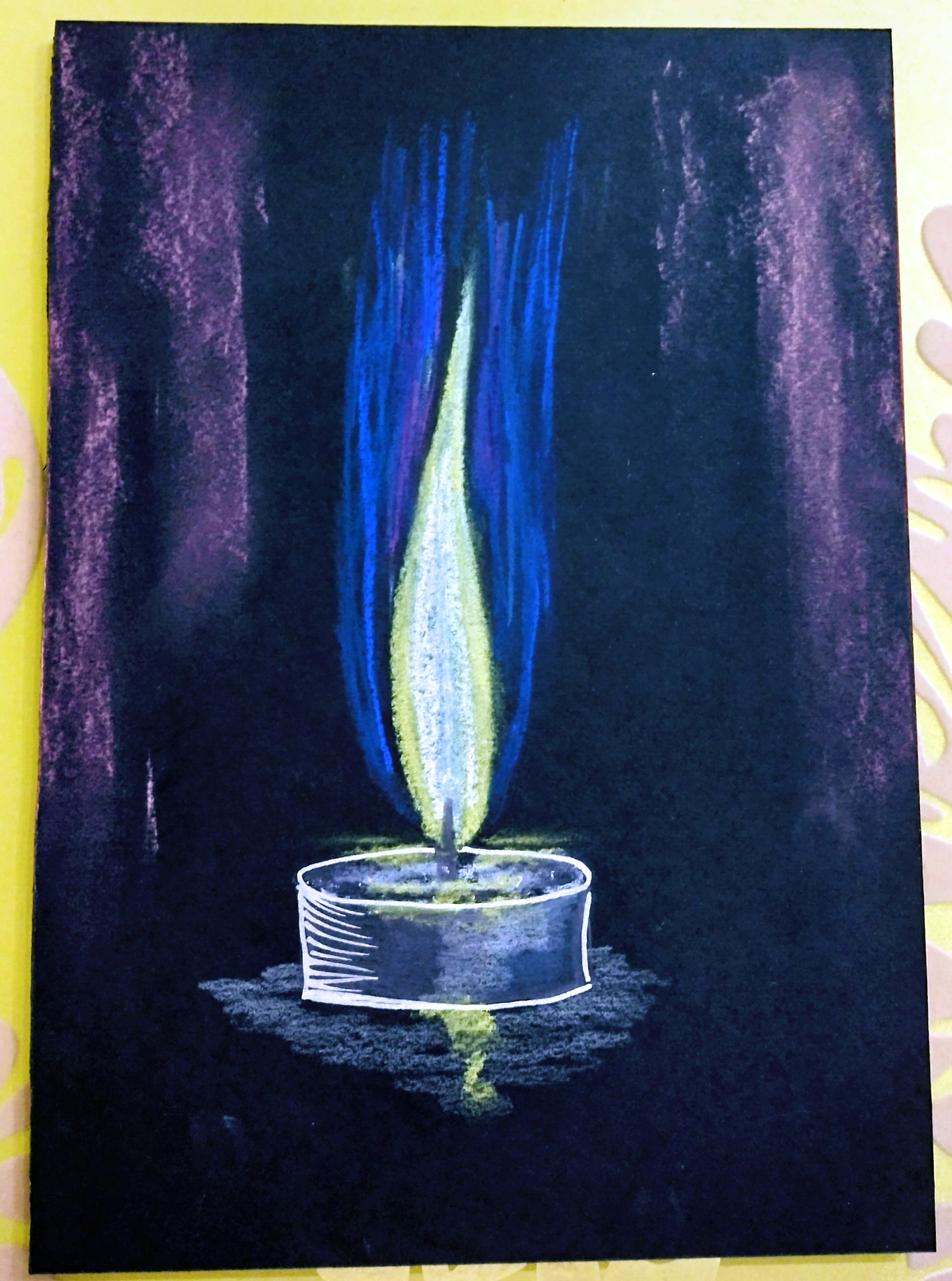 Sichtbar ist eine solide Verbindung zur materiellen Welt. Ruhige kräftige Flamme. Kraftvoll, bodenständig.
